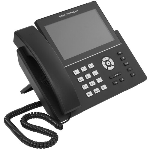 IP-телефон Grandstream GRP-2670 с корпусом из пластика черного цвета располагает большим 7-дюймовым ЖК-дисплеем для вывода данных о звонке, номеров из списка контактов, времени и даты из календаря. Во встроенной записной книжке аппарата, рассчитанного на офисное применение, можно сохранить до 2000 номеров. Особенностью модели является возможность подключения к сети как через кабель RJ-11, так и по Wi-Fi. Телефон располагает одной проводной трубкой. Вы сможете выбрать оптимальный уровень громкости звука в трубке при помощи отдельного регулятора.