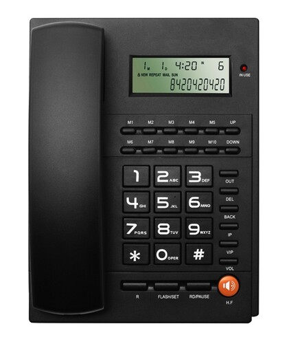 Удобный телефон с ЖК дисплеем и поддержкой функции Caller ID. Возможность питания от телефонной линии позволяет пользоваться телефоном без батареек. На большом дисплее с 5 уровнями контрастности можно установить дату, время и даже будильник.