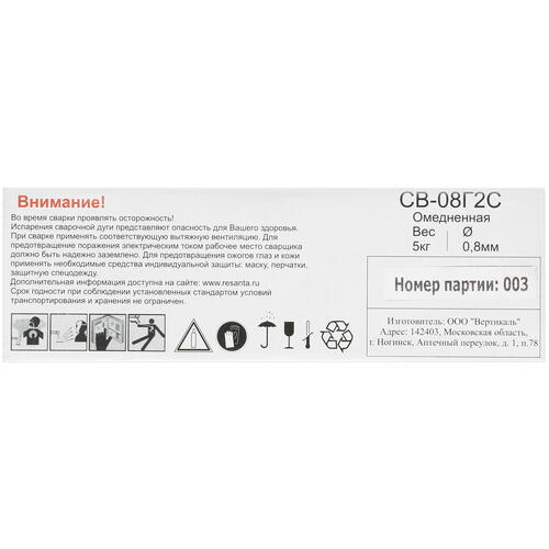 Проволока Ресанта СВ-08Г2С является расходником для полуавтоматических сварочных аппаратов бренда Ресанта и разных моделей от других производителей. Сварочная проволока с омеднением отличается диаметром 0.8 мм, что делает ее подходящей для сваривания металлических деталей электродуговой сваркой MIG-MAG в быту. Расходник для дуговой сварки в атмосфере из инертного газа позволяет сваривать не только разные виды сталей, но и другие металлы.