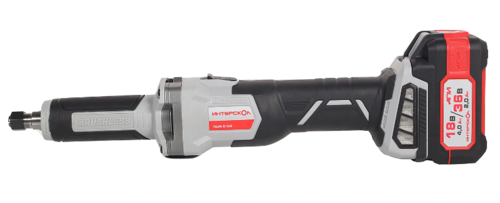Прямошлифовальные машины предназначены для выполнения различных операций с применением борфрез, шлифовальных головок различных типов и т.д. С помощью соответствующей оснастки они могут в той или иной степени заменить целый ряд инструмента, в частности, дрель, фрезер и угловую шлифовальную машину. Но лучше всего способности прямошлифовальных машин раскрываются при обработке внутренних поверхностей труб, особенно небольшого диаметра, полостей на деталях (расточка, углубление, шлифовка, полировка, изменение формы), а также при решении прочих подобных задач. Питание от аккумуляторных батарей (АКБ) с высокотоковыми аккумуляторами и применение инновационного бесщеточного двигателя с цифровым управлением делают инструмент максимально мобильным и удобным в использовании при сохранении достаточной мощности на уровне сетевых . Модель имеет цанговый зажим под оснастку с хвостовиком 6 мм, а шпиндель опирается на надежные и долговечные подшипники качения. Ползунковый выключатель с блокировкой непреднамеренного включения, функция плавного пуска и обрезиненный корпус в местах хвата обеспечивают безопасность и удобство работы.