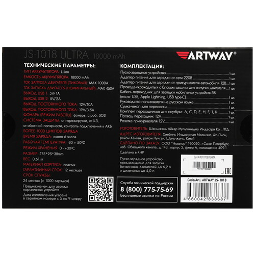 Пусковое устройство ARTWAY JS-1018 Ultra [9049791]