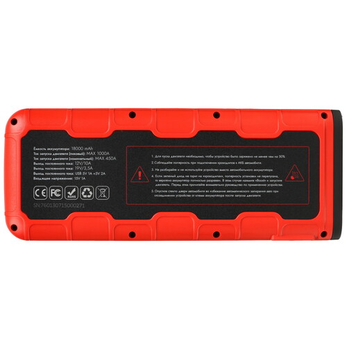 Пуско-зарядное устройство ARTWAY JS-1018 Ultra обеспечивает запуск двигателя автомобиля при полностью разряженном аккумуляторе с напряжением 12 В. Оно имеет диапазон пускового тока 450-1000 А. Наличие 2 разъемов USB Type-A предусматривает подключение ноутбука, планшета, смартфона и других устройств для подзарядки.