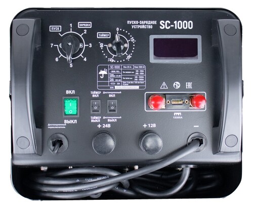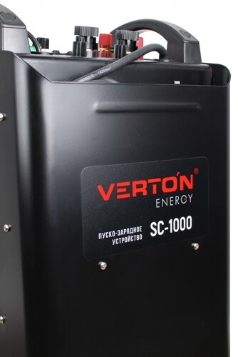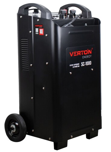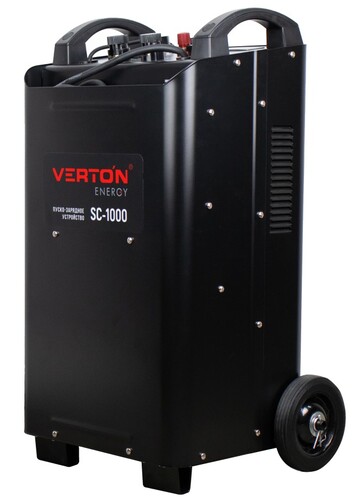 Пуско-зарядное устройство VERTON Energy SC-1000 используется в быту для зарядки АКБ, а также запуска двигателей транспортных средств с севшими АКБ с диапазоном емкости от 20 до 1300 Ач. Устройство применяется в автосервисах и на станциях технического обслуживания, имеет 8 режимов заряда, дистанционное управление, таймер режима зарядки, отсек для хранения проводов. Надежный контакт и безопасность обеспечивают мощные зажимы, изолированные термопластичной резиной.