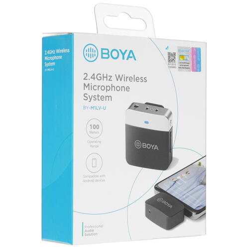 Радиосистема BOYA BY-M1LV-U обеспечивает высокое качество передачи звука без проводов. Модель станет отличным выбором для журналистов, блогеров и других пользователей. Вы сможете записывать интервью и проводить прямые эфиры. Радиосистема состоит из 2 модулей – передающего (со встроенным микрофоном) и принимающего. «Приемник» подключается к Android-совместимому планшету или смартфону с помощью разъема USB-C. Звук передается на расстояние до 100 м. Максимальный радиус распространения сигнала достижим в условиях прямой видимости. Чувствительность микрофона, равная -39 дБ, достаточна для качественной записи даже негромкого звука.