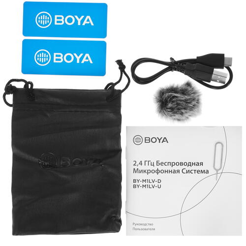 Радиосистема BOYA BY-M1LV-U рассчитана на автономную работу в течение времени, достигающего 6 ч. Приемник и передатчик не доставляют неудобств благодаря невысокой (10 и 18 г соответственно) массе. В комплектацию радиосистемы включены USB-кабель для зарядки и мягкий чехол.
