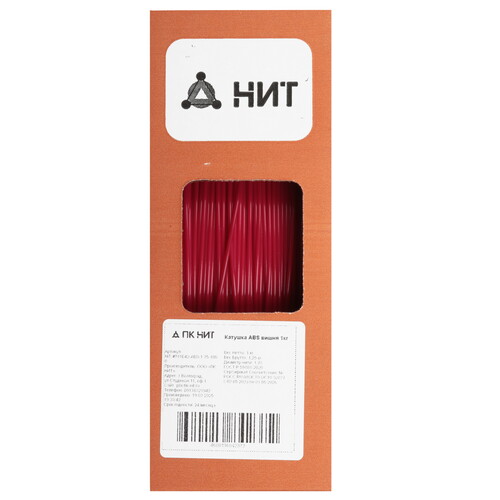 НИТ ABS предназначен для филаментной печати путем послойного построения. Катушка с диаметром 20 см, высотой 7.52 см и посадочным размером 5.3 см защищает пластик от деформаций для плавной подачи и исправной работы экструдера. Из ABS-филамента сложно печатать крупные детали. Но готовые изделия обладают повышенной ударопрочностью и термостойкостью.