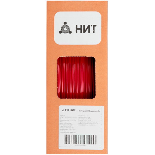 НИТ ABS предназначен для филаментной печати путем послойного построения. Катушка с диаметром 20 см, высотой 7.52 см и посадочным размером 5.3 см защищает пластик от деформаций для плавной подачи и исправной работы экструдера. Из ABS-филамента сложно печатать крупные детали. Но готовые изделия обладают повышенной ударопрочностью и термостойкостью.