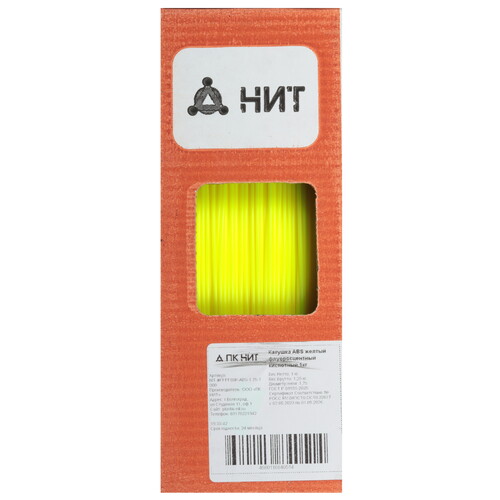 Желтый пластик НИТ ABS флуоресцентный способен светиться в темноте. Поэтому из этого филамента можно делать декоративные элементы интерьера, сувениры и подобные изделия. ABS обладает повышенной ударопрочностью и термостойкостью. После затвердевания напечатанные объекты можно обрабатывать наждачной бумагой или автоматическими инструментами без риска перегрева и случайной деформации поверхности.