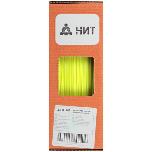 Пластик НИТ ABS флуоресцентный предназначен для филаментной печати путем послойного построения объектов. Нить толщиной 1.75 мм подходит для заправки разных моделей 3D-принтеров. Чувствительный к перепадам температур ABS-материал требует обязательного наличия термокамеры или стола с подогревом до 90 °C. Катушка с внешним диаметром 20 см, высотой 7.52 см и посадочным размером 5.3 см защищает нить от перегибов и заломов для аккуратной подачи в экструдер.