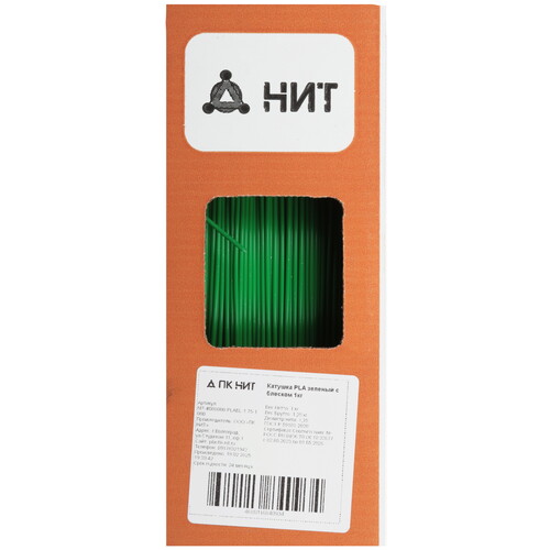 Пластик НИТ PLA предназначен для филаментной печати путем послойного построения объектов. Нить толщиной 1.75 мм подходит для заправки разных моделей 3D-принтеров. Материал PLA не требует сложной настройки и обязательного наличия в устройстве термокамеры или стола с подогревом. Катушка с внешним диаметром 20 см, высотой 7.52 см и посадочным размером 5.3 см защищает нить от перегибов и заломов для аккуратной подачи в экструдер.
