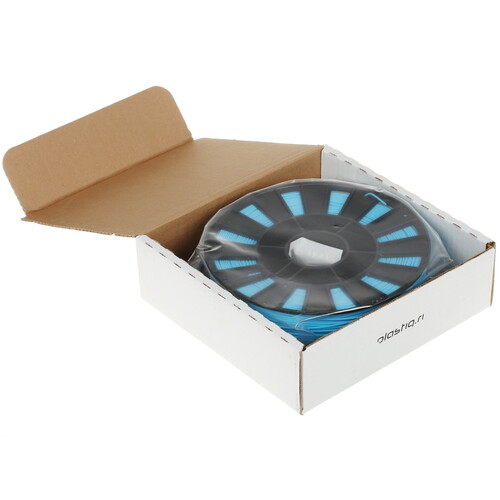 Изделие PLASTIQ PLA LIGHTBLUE поставляется в виде нити толщиной 1.75 мм с плотностью 1.24 г/см³. С использованием такого пластика скорость печати составляет 10 мм/с. Нить поставляется в удобной для хранения катушке высотой 9.5 см с внешним диаметром 18 см и посадочным отверстием 5.7 см.