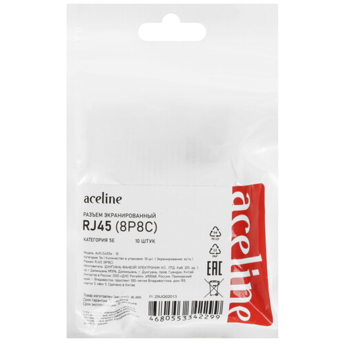 Коннектор RJ45 Aceline RJ45 8P8C соответствует категории 5e. Имеется экранирование. Коннектор RJ45 Aceline RJ45 8P8C поставляется в количестве 10 штук.