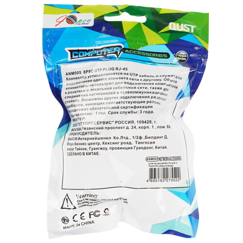 Коннектор RJ45 iOpen ANM005-1/20 соответствует категории 5e. Экранирование отсутствует. Коннектор RJ45 iOpen ANM005-1/20 поставляется в количестве 20 штук.