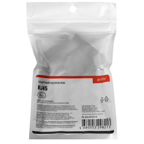 Защитный колпачок RJ45 Aceline AcPCRJ4510G предназначен для защиты коннекторов от загрязнений и механических воздействий. Количество в комплекте – 10.