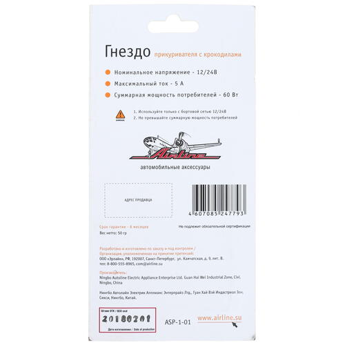 Разветвитель автоприкуривателя Airline ASP-1-01 рассчитан на подключение приборов потребителей суммарной мощностью до 60 Вт. Наибольший поддерживаемый ток нагрузки - 5 А. Упаковкой для полезного автомобильного аксессуара послужил прозрачный блистер.