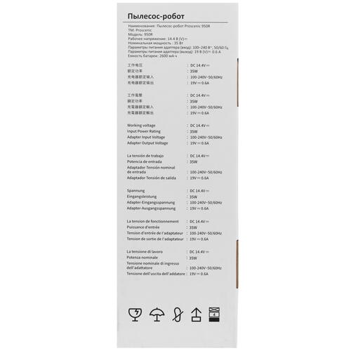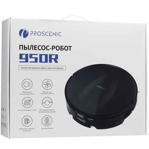 Беспроводная синхронизация с совместимой техникой выполняется с помощью интерфейсов Wi-Fi и Bluetooth. Для управления роботом-пылесосом Proscenic 950R в комплекте поставляется пульт ДУ. Голосовой ассистент уведомляет пользователя о состоянии работы. Аккумулятор емкостью 2600 мА*ч гарантирует до 110 минут автономности робота-пылесоса на одном заряде.