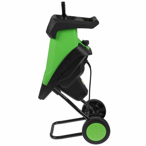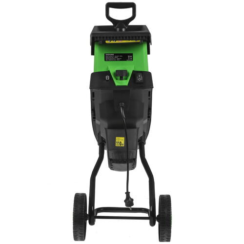 Садовый измельчитель выполнен в пластиковом корпусе, обеспечивающим высокую надежность и устойчивость к внешним воздействиям. Благодаря вертикальной конструкции модель отличается компактными размерами и не займет много места на территории, а массивные колеса и удобные ручки позволят с легкостью перемещать инструмент по участку. В качестве источника питания измельчитель использует сеть 240 В.