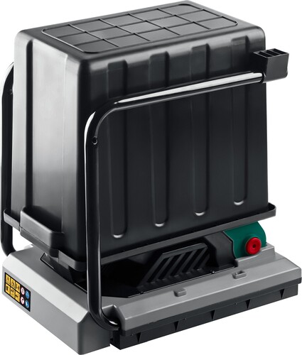 Ножи изготовлены из закаленной стали и имеют заточку с двух сторон. Они сохраняют высокую остроту в течение длительного времени. Измельчитель оснащается колесиками, они облегчают последующее перемещение.