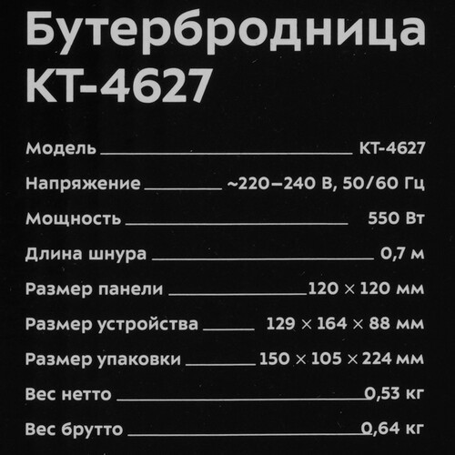 Электрическая бутербродница КТ-4627 поможет приготовить самые разнообразные бутерброды. В бутерброднице можно готовить не только привычные бутерброды с ветчиной и сыром, но и сладкие бутерброды, пирожки из слоёного теста и многое другое.