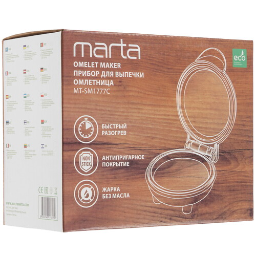 MT-SM1777С - это отличный компактный прибор для выпечки. Для наилучшего пропекания в конструкции реализован равномерный прогрев рабочей поверхности с антипригарным покрытием.