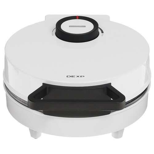 Терморегулятор плавно настраивает нагрев и поддерживает заданную температуру. Прибор выполнен в корпусе с термоизолированной ручкой. Она не сильно греется, что защищает руки от ожогов при открытии и закрытии панелей. Для визуального контроля состояния работы вафельницы Dexp WM-1200 предусмотрены световые индикаторы.