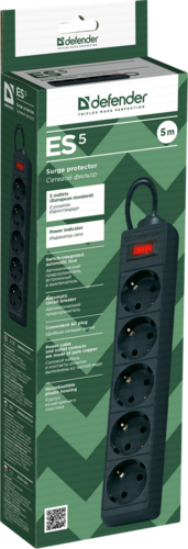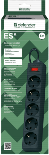 Сетевой фильтр Defender ES 1.8 черный [0117984]