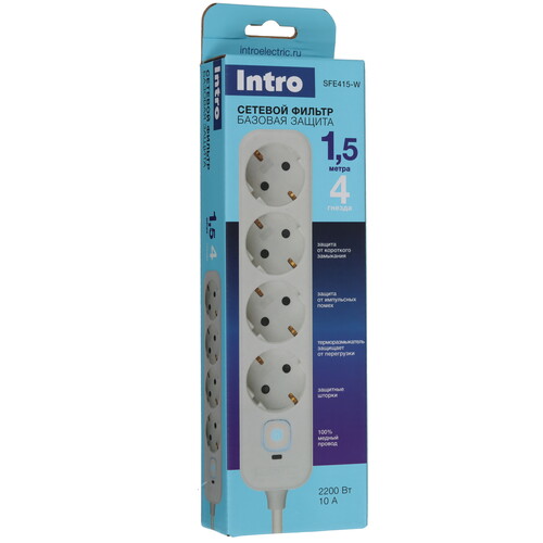 Сетевой фильтр Intro SFE415-W предназначен для подключения электрических приборов и устройств различного назначения, корпус изготовлен из высокопрочного пластика, который защищает фильтр от внешних воздействий.