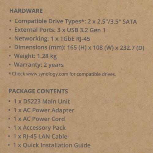 Сетевое хранилище (NAS) Synology Disk Station DS223 [5401215]