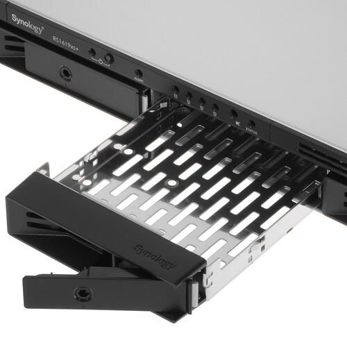 Сетевое хранилище (NAS) Synology RackStation RS1619xs+ рассчитано на установку 4 SATA-накопителей 2.5-дюймового и 3.5-дюймового форм-факторов. Можно использовать не только жесткие диски, но и SSD. Максимально поддерживаемый объем одного накопителя составляет 16 ТБ. Хранилище поддерживает массивы JBOD, RAID 6, RAID F1, RAID 5, RAID 0, RAID 1 и RAID 10. Также возможно использование режима Basic, в котором в работе участвует единственный накопитель.