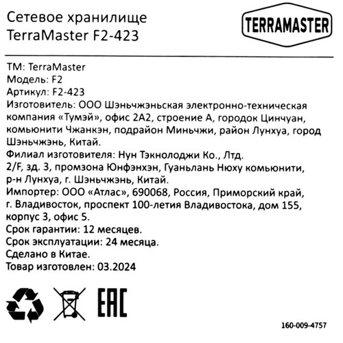 Сетевое хранилище (NAS) TerraMaster F2-423 [5445483]