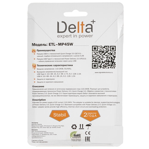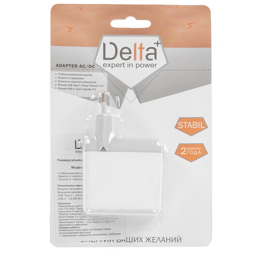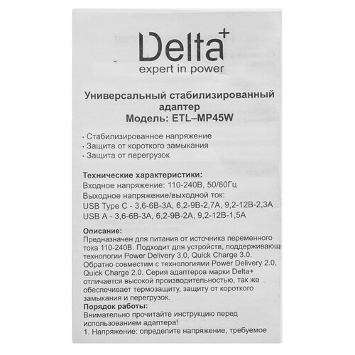 Сетевое зарядное устройство Delta+ ETL-MP45W белый [5480071]
