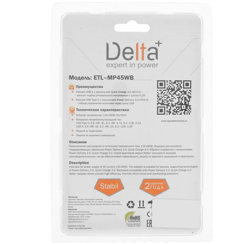 Сетевое зарядное устройство Delta+ ETL-MP45WB серый [5480070]