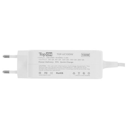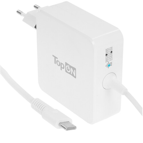 Блок питания TopON 100W TOP-UC100 подходит для зарядки ноутбуков MacBook, HP, Dell, ASUS, Lenovo, Acer, Samsung, Xiaomi, MSI, HONOR, HUAWEI, смартфонов, планшетов, умных колонок, беспроводных Bluetooth-колонок, модемов, внешних аккумуляторных батарей и других цифровых устройств через универсальный порт USB-C.