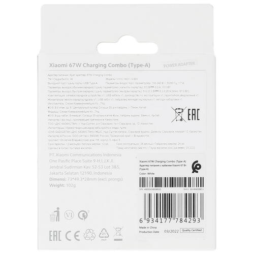 Сетевое зарядное устройство Xiaomi 67W Charging Combo белый [5049366]