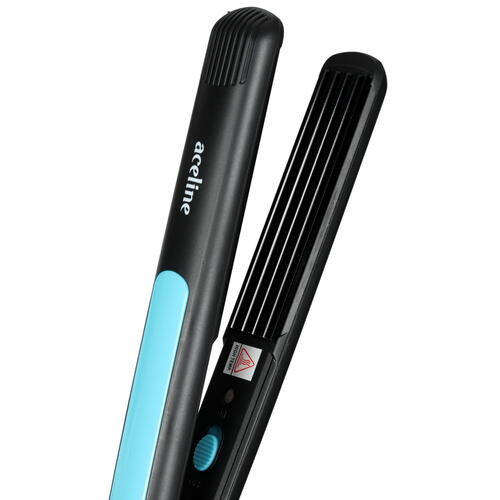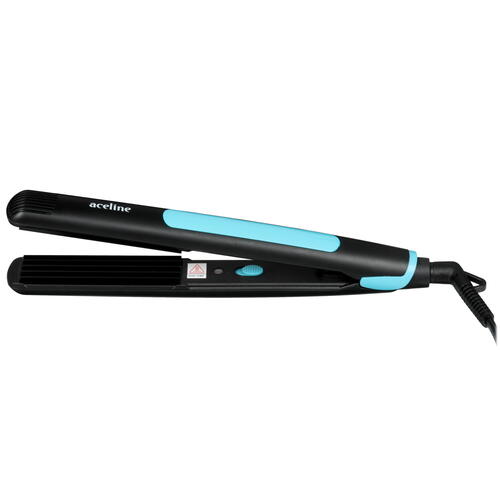 Щипцы для завивки волос Aceline HC-8522SH мощностью 25 Вт заключены в пластиковый корпус черного и голубого оттенков. Модель создает гофрированные волны среднего размера. Температура нагрева достигает 200 °C.