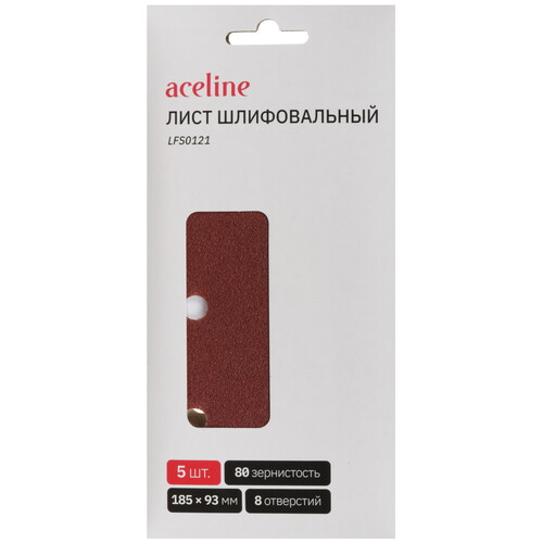 Шлифовальный лист Aceline LFS0121 имеет 8 отверстий. Количество в комплекте – 5.