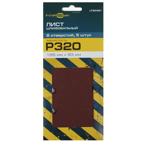 Шлифовальный лист FinePower LFS0421 является надежной оснасткой для совместного использования с вибрационными шлифовальными машинками. Лист обладает зернистостью P320, поэтому обеспечивает тщательную обработку дерева, пластика, краски, металла, шпатлевки и других материалов. Абразивная поверхность отличается стойкостью к износу и продолжительным сроком службы. Основой листов является плотная бумага с липучкой-велкро. В конструкции листа имеется 8 отверстий для быстрого отвода пыли и отходов. В наборе FinePower LFS0421 поставляются 5 листов с размерами 185x93 мм.