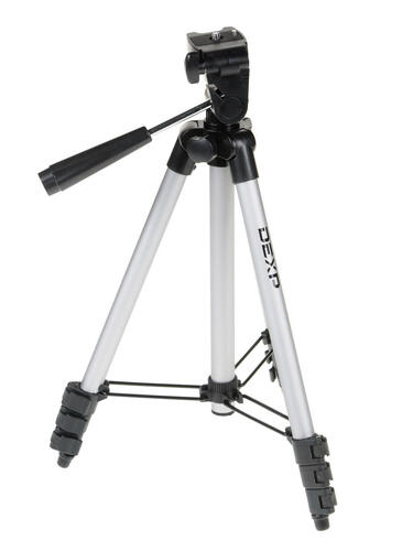 Штатив DEXP WT-3110 – это компактная напольная модель. Корпус штатива сделан из прочного и легкого алюминия, поэтому его вес всего 450 г. Серебристый цвет корпуса гармонирует с любой электротехникой. Нагрузка на штатив не может превышать 1.5 кг, чего вполне достаточно для установки популярных моделей фото и видеотехники. Для устойчивости ножки трипода имеют резиновые накладки. Это гарантирует надежность установки всей конструкции.