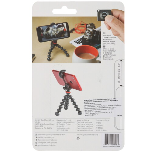 Расширьте свой творческий потенциал с GorillaPod Mobile Mini. Прорезиненные губки надежно удерживают телефон, а гибкие шарниры ножек обеспечивают устойчивость на любой поверхности. Подходит для большинства смартфонов обычного или большого размера, с чехлом или без.