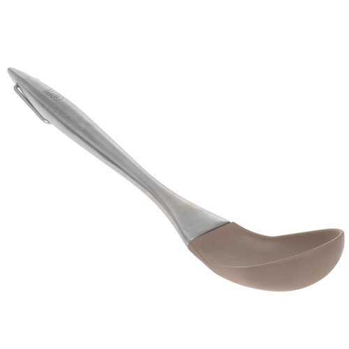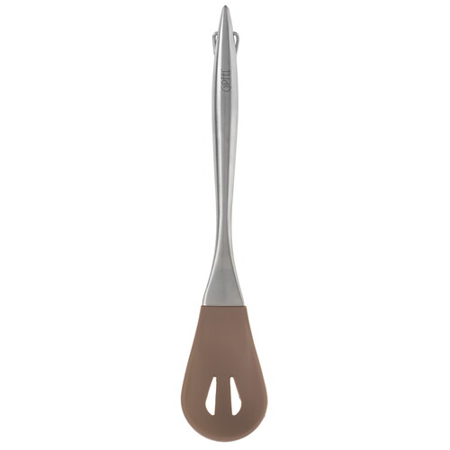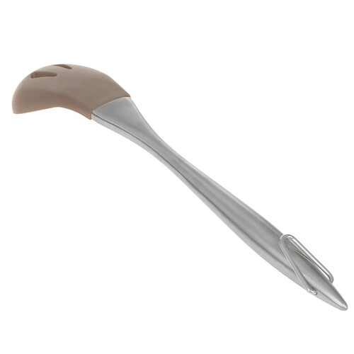 Ложка-шумовка, является нужным помощником на кухне. Она непременно пригодится в приготовлении различных блюд, в том числе каш, плова. Аксессуар выполнен в размерах 33×6,5см, рабочая поверхность ложки изготовлена из нейлона с силиконовым покрытием. Данный материал не издает неприятного запаха, отличается износостойкостью и не выделяет вредных веществ даже при контакте с высокими температурами. Ручка изделия выполнена из нержавеющей стали и имеет эргономичную форму, благодаря чему ее удобно держать в руке. Нержавеющая сталь не поддается коррозии и характеризуется высокой прочностью. Такую шумовку можно мыть вручную или в посудомоечной машине