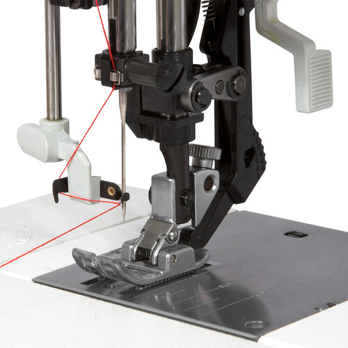 Швейные машины этой модели снабжены верхним транспортером ткани, который обеспечивает равномерную подачу даже самых сложных (трикотаж) и тонких тканей, а также позволяет сшивать несколько слоев материала без смещения. Использование вертикального челнока «двойного обегания» не допускает высоких вибраций и пропуска стежков при шитье на большой скорости, обеспечивает низкий уровень шума. Благодаря встроенному заправщику верхней нити даже начинающая швея просто и без особого труда заправит нитку в иглу. Металлический корпус обеспечивает устойчивое положение швейной машины, а ножная педаль плавно регулирует скорость шитья. В комплектацию каждой швейной машины входит инструкция по эксплуатации на русском языке, позволяющая без лишних усилий разобраться в принципе работы данной модели.