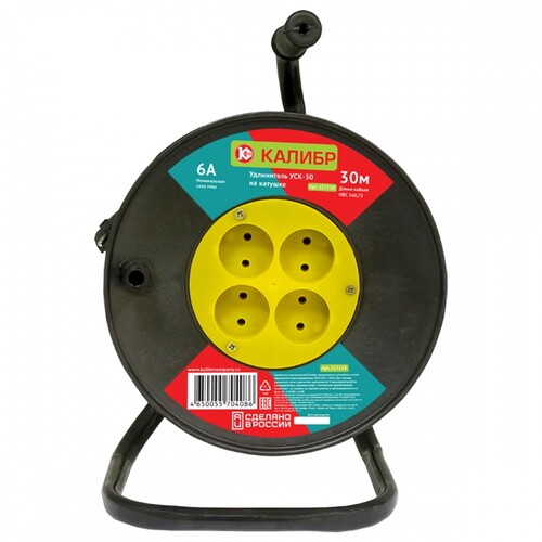 Удлинитель электрический "Калибр УСК-30" на катушке предназначен для работы в сетях переменного тока напряжением 230±10%, ~50 Гц. При помощи удлинителя легко подключить удаленные от стационарной розетки электроприборы, имеющие шнур с плоской или круглой вилкой. Незаменим на стройке, на садовом участке, в промышленности и в быту.