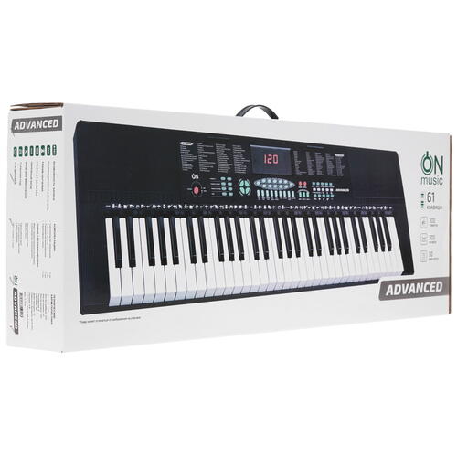 Синтезатор ON ADVANCED ‒ удобный инструмент для обучения и игры. Он оборудован 61 клавишей, содержит панель управления для настройки громкости и звучания. Особенность модели в том, что она содержит обучающую многоуровневую технологию для освоения навыков игры. Инструмент можно подключить к сети, а можно установить батарейки, что делает его мобильным и позволяет использовать в любом месте. Для сетевого кабеля, гарнитуры и подключения аудиоустройств в тыльной части корпуса содержатся все необходимые разъемы и выходы.