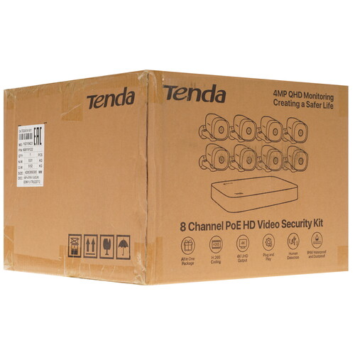 Комплект видеонаблюдения Tenda K8P-4TR включает 8 камер видеонаблюдения модели Tenda IT7-PRS вместе с видеорегистратором и дает вам возможность организовать собственный комплекс видеонаблюдения на частной территории, в складском или торговом помещении. Представленный в комплекте видеорегистратор с портами 8x RJ45 PoE поддерживает сохранение видеозаписей с подключенных камер в видеоформате H.264 или H.265 на установленный HDD-диск объемом 1-10 ТБ. Наибольшее поддерживаемое разрешение видеозаписи –2560х1440.