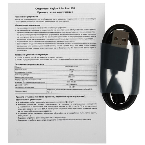 Смарт-часы Haylou Solar Pro черного цвета защищены от попадания пыли и воздействия влаги: устройство соответствует классу IP68. Модель совместима с операционными системами Android и iOS. Максимальное время автономной работы смарт-часов Haylou Solar Pro – 480 ч.