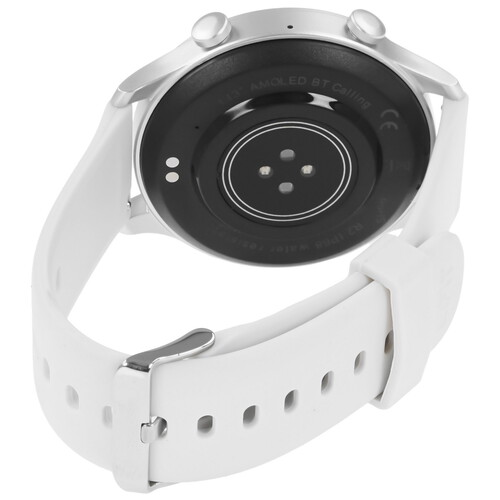 Смарт-часы WiWatch R2 оповещают пользователя об отсутствии активности, присылая уведомление. Вносить пометки о цикле и симптомах можно через женский календарь. Данные транслируются на цветном 1.43-дюймовом дисплее. Фиксация на запястье осуществляется с помощью съемного силиконового ремешка белого цвета. Переключение треков и получение уведомлений от приложений возможно после синхронизации со смартфоном.