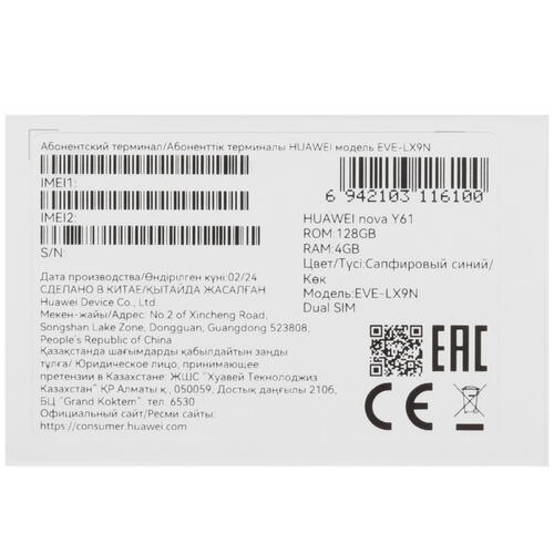 6.52" Смартфон HUAWEI nova Y61 128 ГБ синий [5450273]