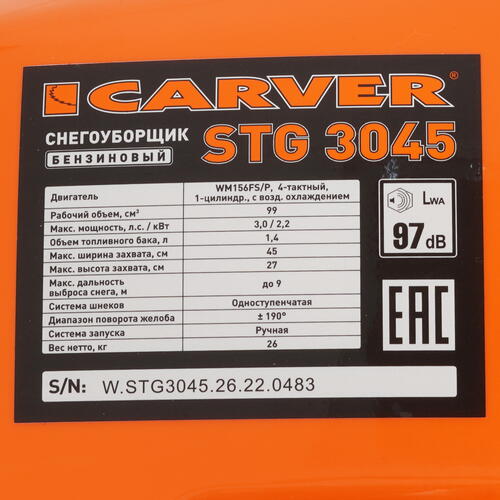 Снегоуборщик бензиновый Carver STG-3045 [4854227]