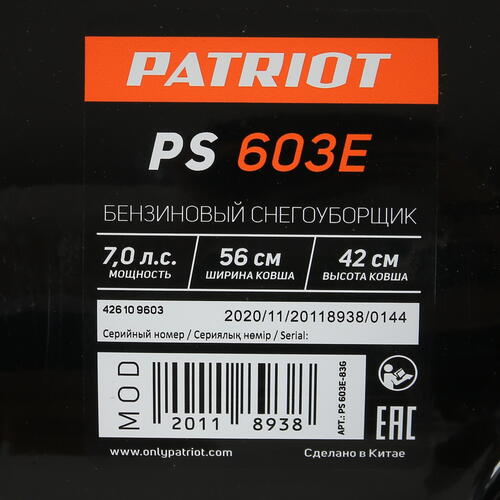 Снегоуборщик бензиновый Patriot PS 603 E [8155245]