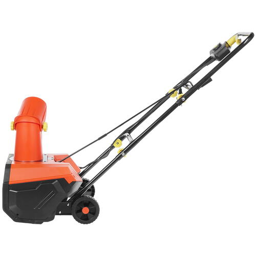 Снегоуборщик электрический DDE STE180 обеспечивает дальность выброса снега до 4 м. Модель позволяет не только изменять дальность выброса, но и изменять его направление. Перемещение снегоуборщика осуществляется силами пользователя. Ширина ковша составляет 400 мм. Высота ковша – 180 мм.